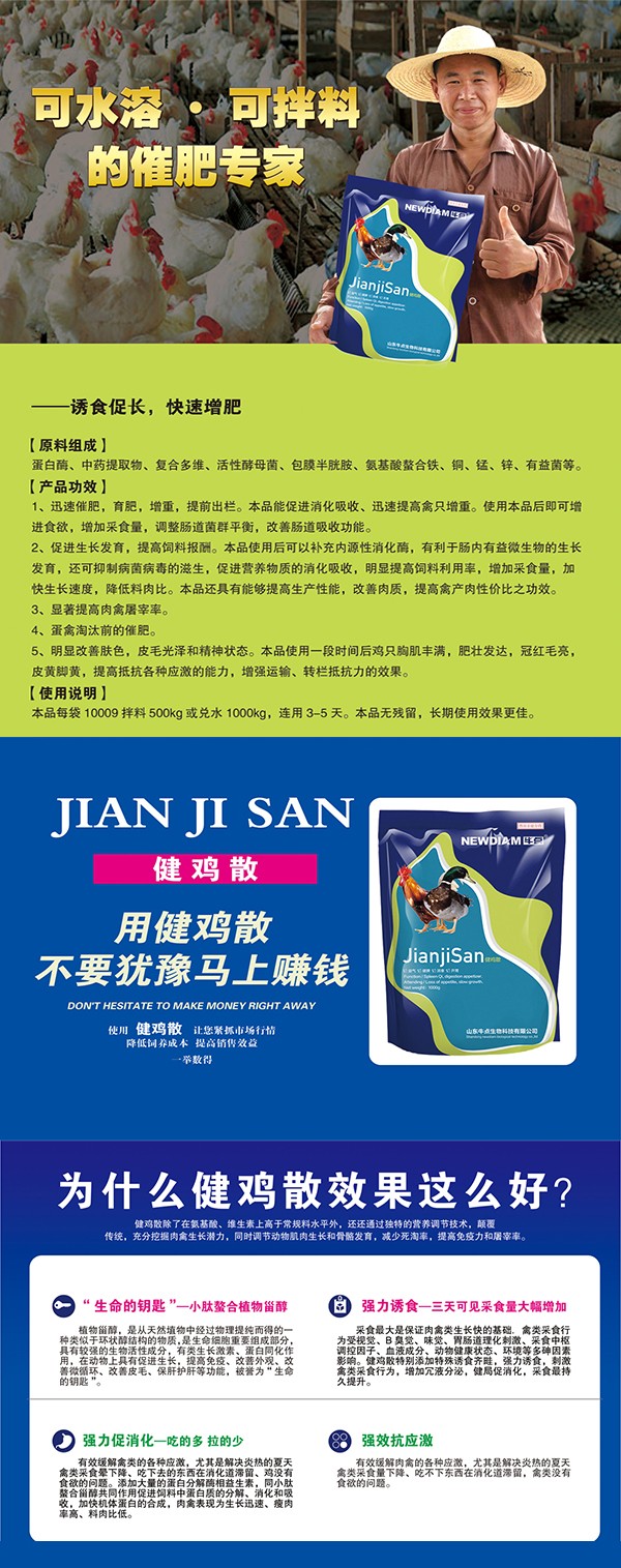 •  本品每袋1000g拌料1000kg或飲水2000kg,本品無殘留,長期試用效果更佳。